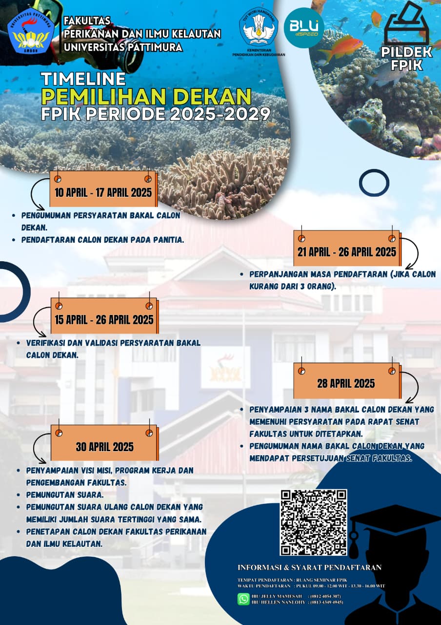 Pemilihan Dekan Fakultas Perikanan dan Ilmu Kelautan Periode 2025-2028 enricoApril 10, 2025 Facebook Twitter WhatsApp Pinterest